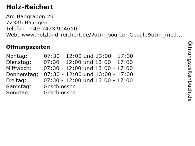 | Öffnungszeiten Holz-Reichert in Balingen anzeigen | |