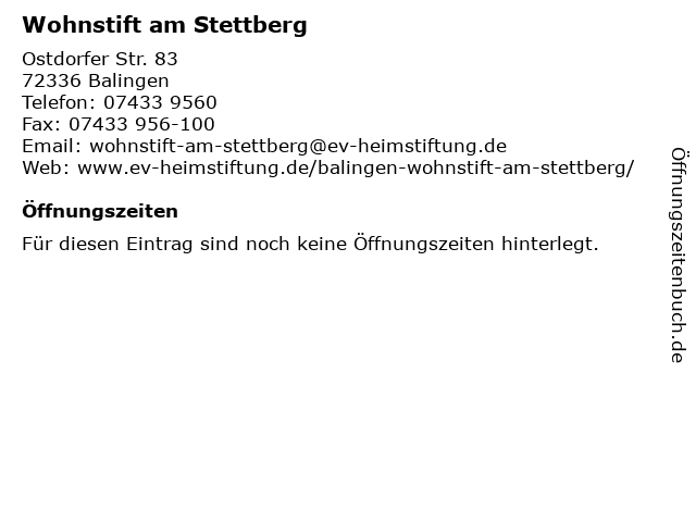 Öffnungszeiten Wohnstift am Stettberg in Balingen anzeigen | |