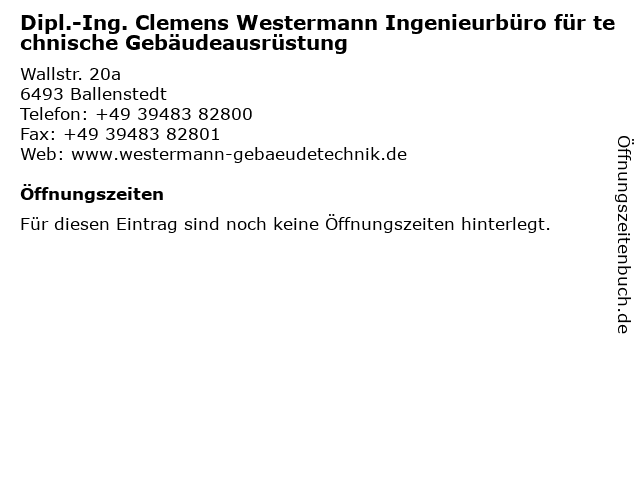 | Dipl.-Ing. Clemens Westermann Ingenieurbüro für technische Gebäudeausrüstung anrufen | |
