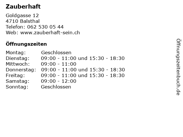 | Öffnungszeiten Zauberhaft in Balsthal anzeigen | |