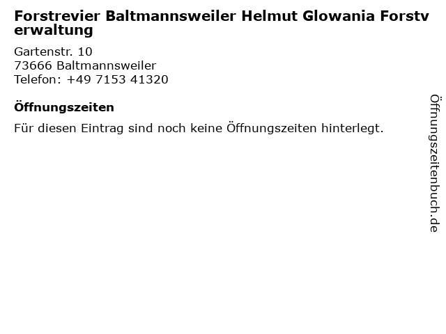 | Forstrevier Baltmannsweiler Helmut Glowania Forstverwaltung anrufen | |
