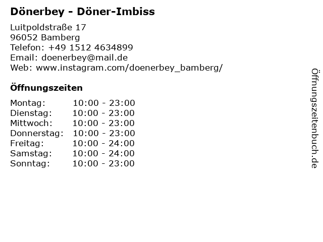 | Öffnungszeiten Dönerbey - Döner-Imbiss in Bamberg anzeigen | |