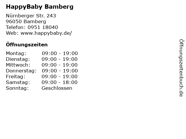 | Öffnungszeiten HappyBaby Bamberg in Bamberg anzeigen | |