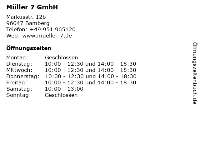 | Öffnungszeiten Müller 7 GmbH in Bamberg anzeigen | |