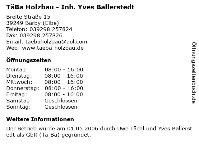 Branchen & Suchbegriffe zu TäBa Holzbau - Inh. Yves Ballerstedt:ballerstedt, holzbau, täba, yves |