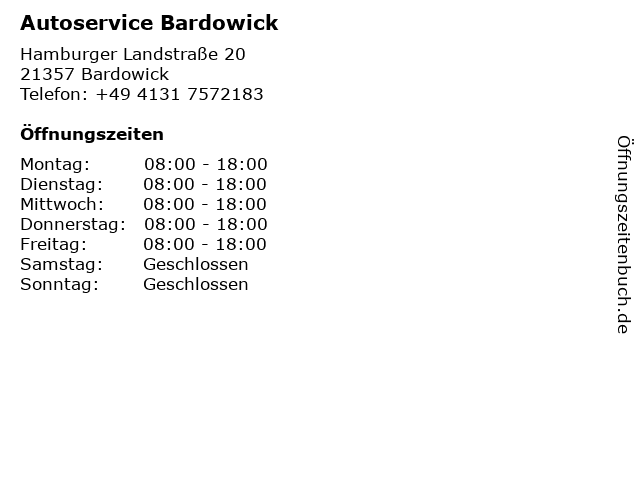 | Öffnungszeiten Autoservice Bardowick in Bardowick anzeigen | |