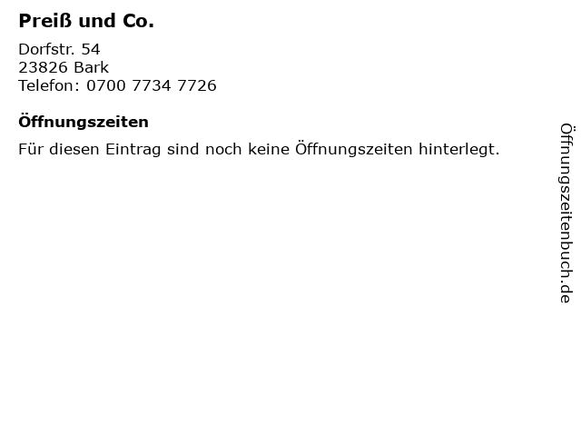 | Telefonnummer Preiß und Co. in Bark (0700 7734 7726) anrufen | |