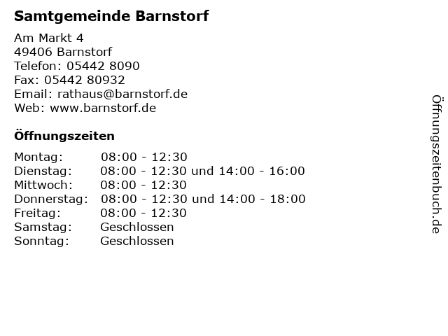 Öffnungszeiten Samtgemeinde Barnstorf in Barnstorf anzeigen | |