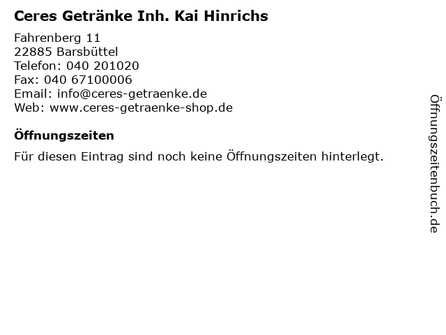 | Ceres Getränke Inh. Kai Hinrichs anrufen | |