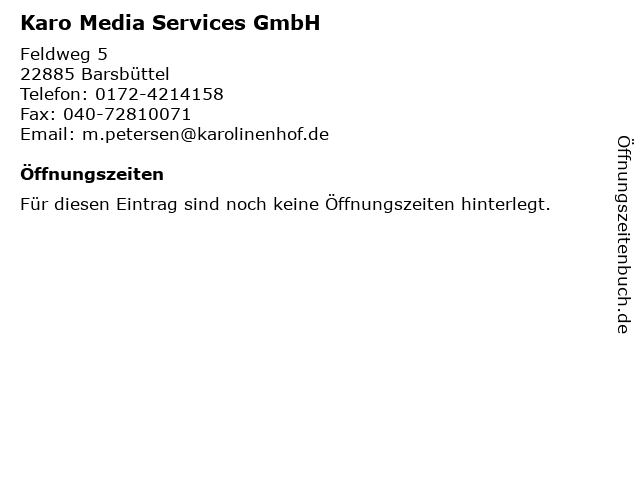 | Öffnungszeiten Karo Media Services GmbH in Barsbüttel anzeigen | |