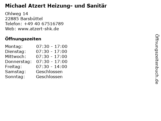 2 André Atzert - Rolläden & Markisen - Notdienst & Service (Entfernung: 6,24 km) Ahrensberger Straße 66, 22041 Hamburg 6 Quasdorf + Kagemann GmbH Sanitär- und Heizungstechnik (Entfernung: 0,42 km) Fahrenberg 13, 22885 Barsbüttel |