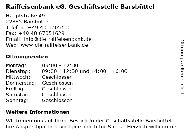Branchen & Suchbegriffe zu Raiffeisenbank eG, Geschäftsstelle Barsbüttel:barsbüttel, baufinanzierung, beratung, depot, eg, finanzierung, geldanlage, geldautomat, geschäftsstelle, immobilien, kredit, kreditkarte, raiffeisenbank, wertpapiere |