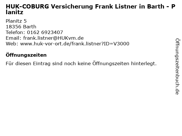 | HUK-COBURG Versicherung Frank Listner in Barth - Planitz anrufen | |