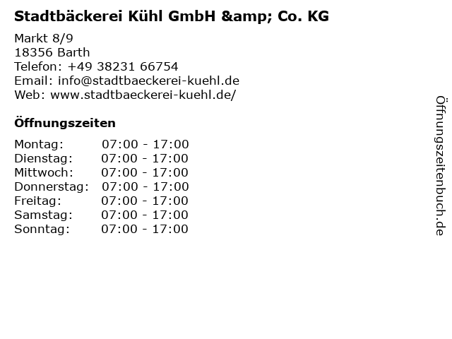 Öffnungszeiten Stadtbäckerei Kühl GmbH & Co. KG in Barth anzeigen