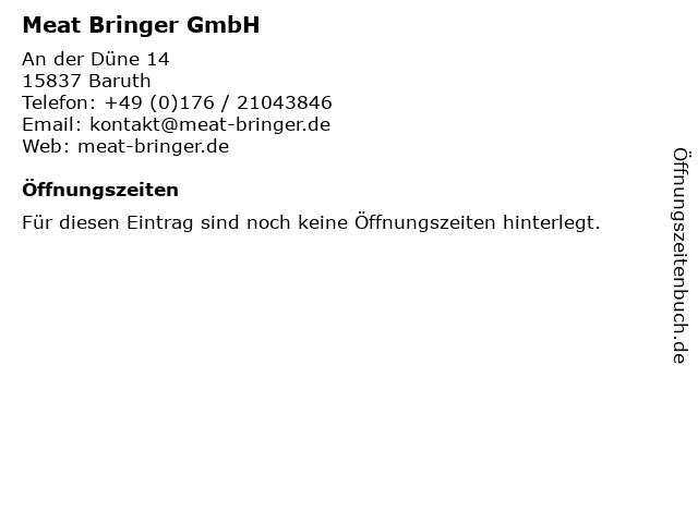 | Öffnungszeiten Meat Bringer GmbH in Baruth anzeigen | |