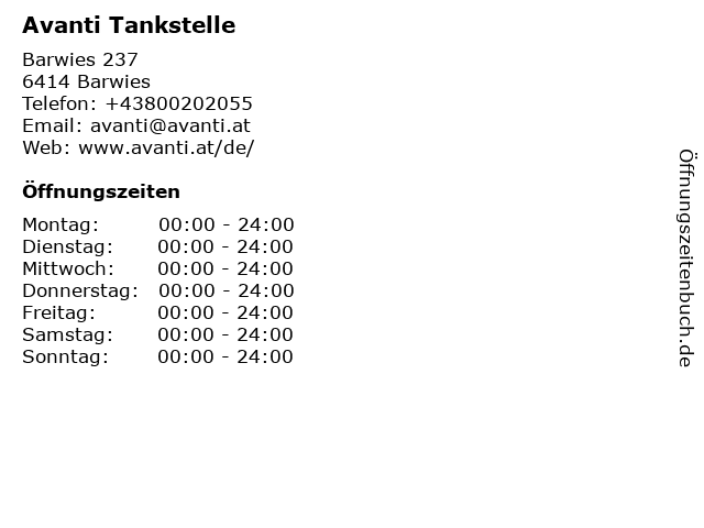 | Öffnungszeiten Avanti Tankstelle in Barwies anzeigen | |
