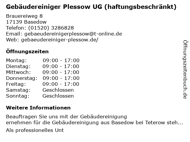 Branchen & Suchbegriffe zu Gebäudereiniger Plessow UG (haftungsbeschränkt):(haftungsbeschränkt), alltagsbegleiter für senioren, alltagsbetreuung, alltagsbetreuung für senioren, begleitung im alltag, büroraumreinigung, büroreinigungen, fensterreinigungen, ferienhausreinigung, gartenhilfe, gebäudereiniger, gebäudereinigung, grundreinigung, haftungsbeschränkt, haushaltsnahe dienstleistungen, haushaltsreinigung, pflegekassenleistungen, plessow, praxisreinigung, ug, unterhaltsreinigung, wintergartenreinigung, wohnungsreinigung |