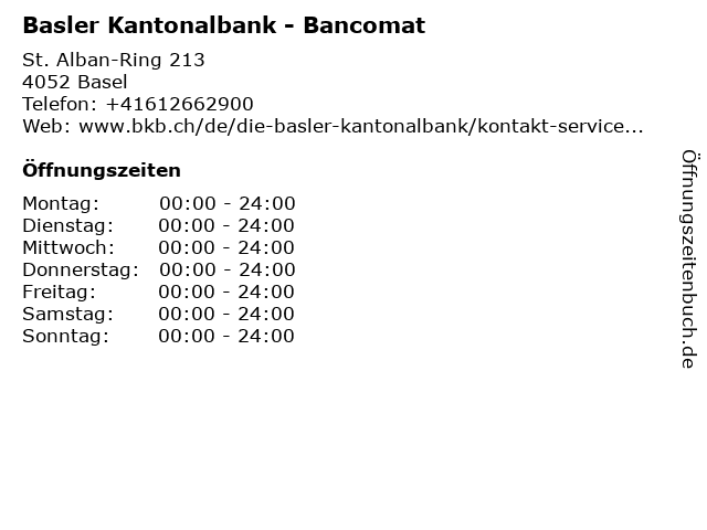 | Öffnungszeiten Basler Kantonalbank - Bancomat in Basel anzeigen | |