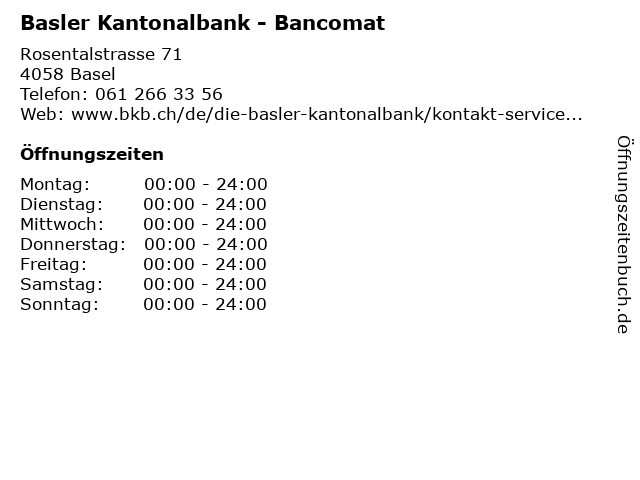 | Öffnungszeiten Basler Kantonalbank - Bancomat in Basel anzeigen | |