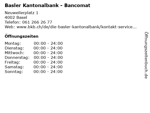 | Öffnungszeiten Basler Kantonalbank - Bancomat in Basel anzeigen | |