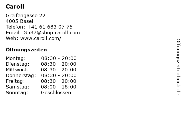 | Öffnungszeiten Caroll in Basel anzeigen | |