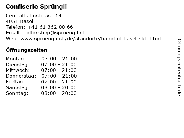 | Öffnungszeiten Confiserie Sprüngli in Basel anzeigen | |