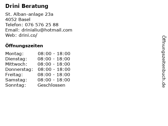 | Öffnungszeiten Drini Beratung in Basel anzeigen | |