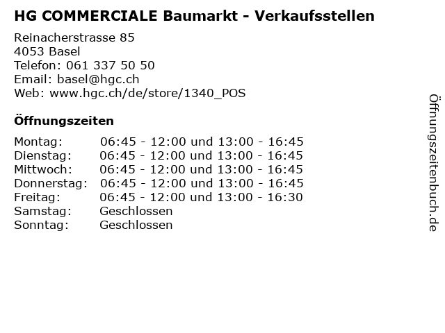 HG COMMERCIALE Baumarkt - Verkaufsstellen in Basel | Telefonnummer, Öffnungszeiten und Adresse