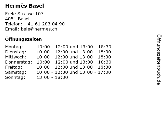 | Öffnungszeiten Hermès Basel in Basel anzeigen | |