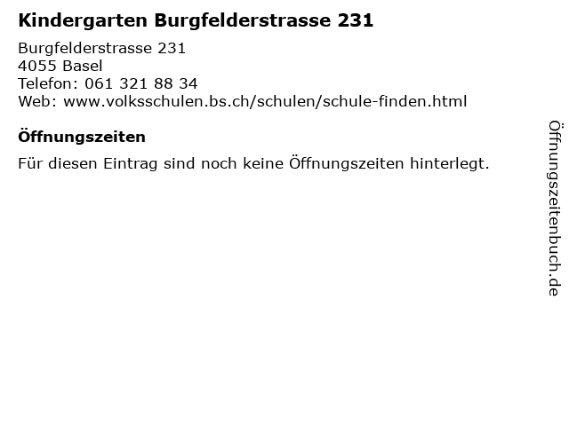 | Kindergarten Burgfelderstrasse 231 anrufen | |