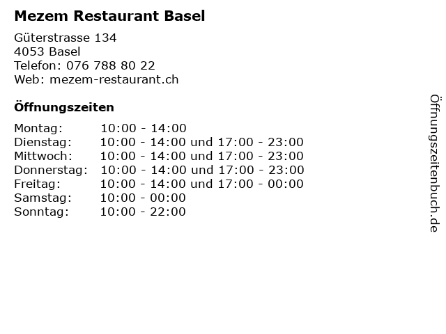 | Öffnungszeiten Mezem Restaurant Basel in Basel anzeigen | |