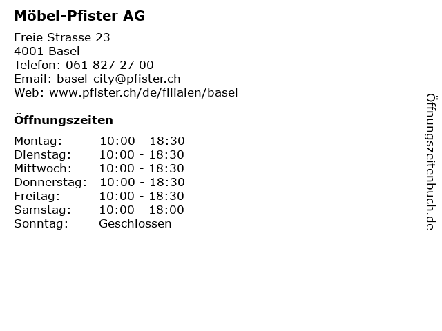 Öffnungszeiten Möbel-Pfister AG in Basel anzeigen | |