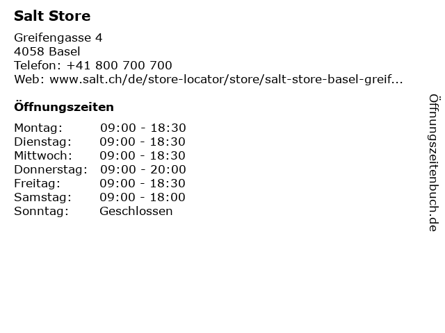 Öffnungszeiten Salt Store in Basel anzeigen | |