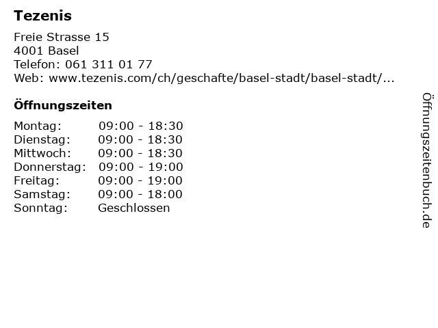 | Öffnungszeiten Tezenis in Basel anzeigen | |