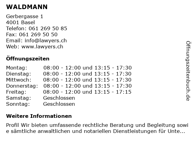 | Öffnungszeiten WALDMANN in Basel anzeigen | |