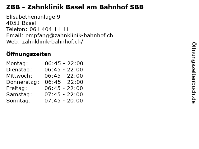 Branchen & Suchbegriffe zu ZBB - Zahnklinik Basel am Bahnhof SBB:bahnhof, basel, sbb, zahnklinik, zbb |