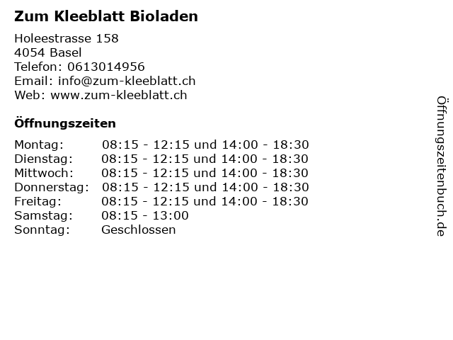 | Öffnungszeiten Zum Kleeblatt Bioladen in Basel anzeigen | |