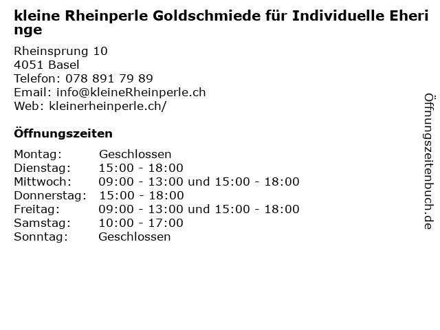 1 Goldschmiede & Schmuckatelier, Marlen & Stefan Wacha (Entfernung: 0,00 km) Rheinsprung 10, 4051 Basel 4 Goldschmiede-Atelier Johannes + Christian Heim (Entfernung: 4,14 km) Hauptstr. 294, 79576 Weil Am Rhein 6 |