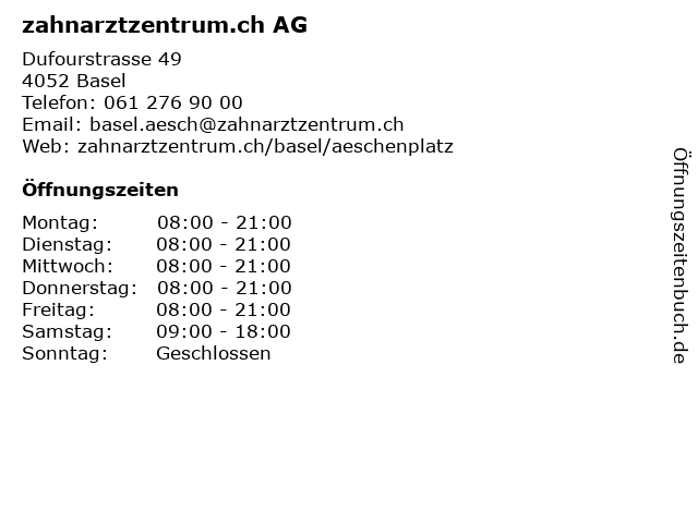 | Öffnungszeiten zahnarztzentrum.ch AG in Basel anzeigen | |