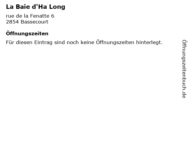 | Öffnungszeiten La Baie d'Ha Long in Bassecourt anzeigen | |