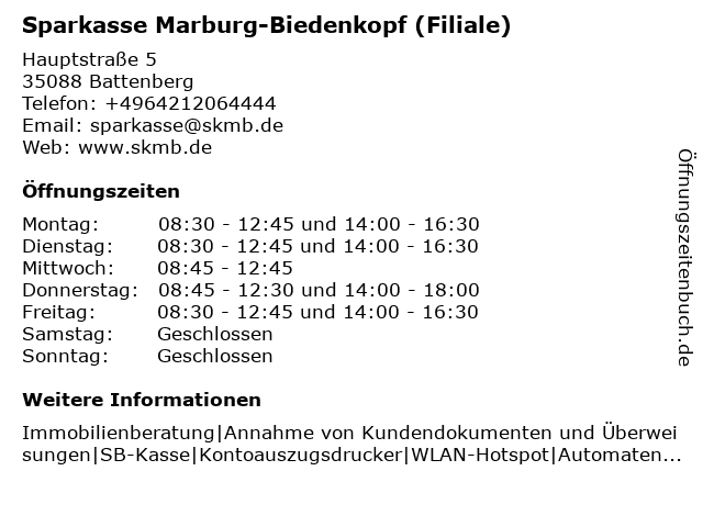 Branchen & Suchbegriffe zu Sparkasse Marburg-Biedenkopf (Filiale):sparkasse |