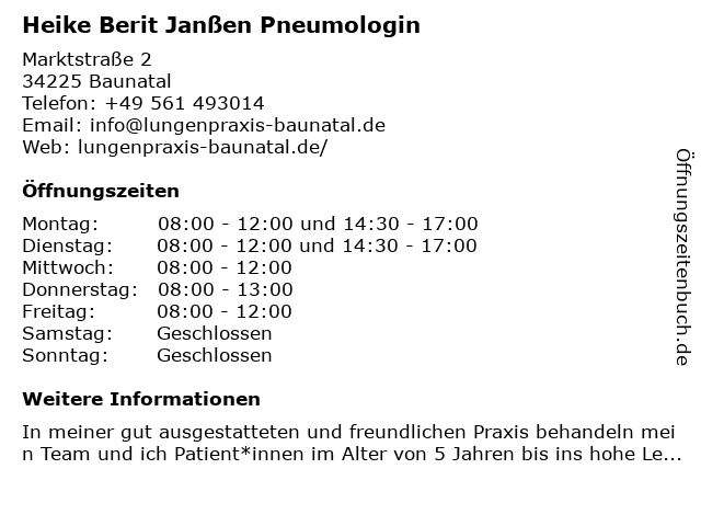 Branchen & Suchbegriffe zu Heike Berit Janßen Pneumologin:6-minuten-gehtest, berit, blutgasanalyse, bodyplethysmografie, diffusionsmessung, heike, hyposensibilisierungen, impulsoszillometrie, janßen, labor, lungenfunktion, pneumologin, polygraphien, pricktest, provokationstestung, pulsoxymetrie, röntgenthorax in 2 ebenen, spirometrie |