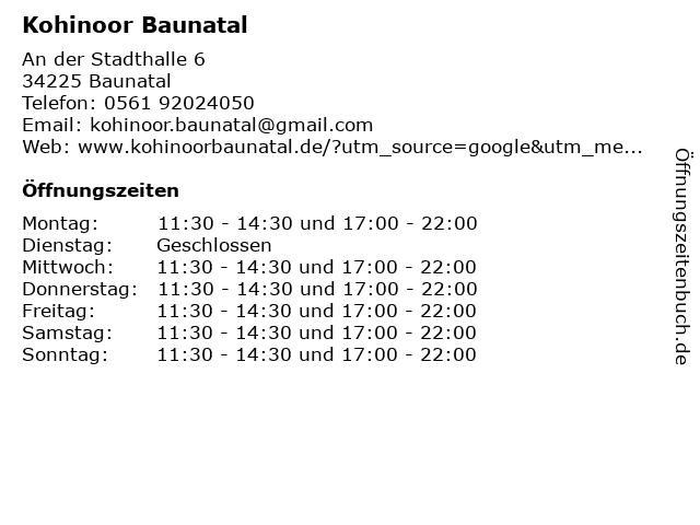 | Öffnungszeiten Kohinoor Baunatal in Baunatal anzeigen | |