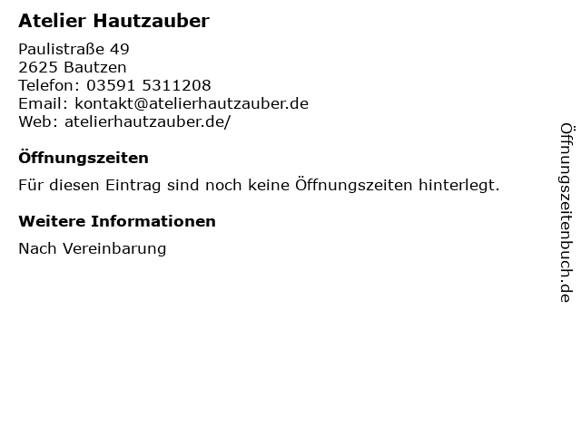 | Öffnungszeiten Atelier Hautzauber in Bautzen anzeigen | |