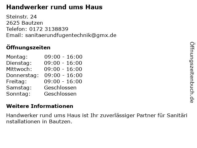 | Öffnungszeiten Handwerker rund ums Haus in Bautzen anzeigen | |