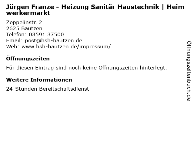 | Jürgen Franze - Heizung Sanitär Haustechnik | Heimwerkermarkt anrufen | |