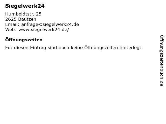 | Öffnungszeiten Siegelwerk24 in Bautzen anzeigen | |