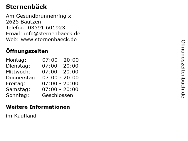 | Öffnungszeiten Sternenbäck in Bautzen anzeigen | |