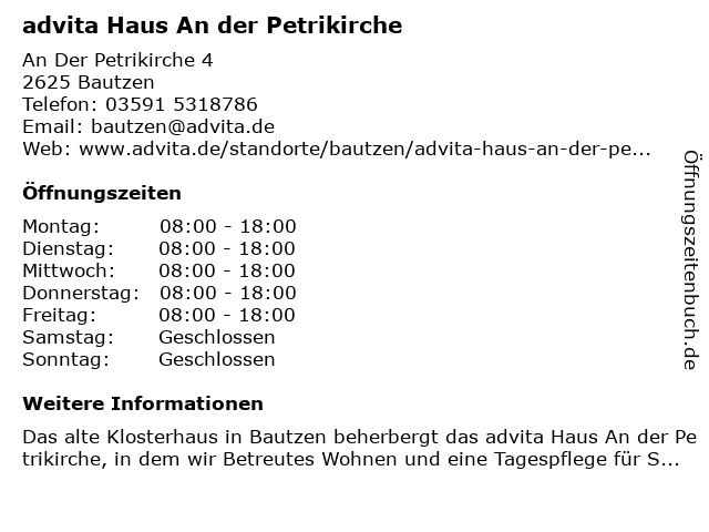 Branchen & Suchbegriffe zu advita Haus An der Petrikirche:advita, an, betreutes wohnen, haus, petrikirche, seniorenheim, seniorenwohnheim, tagesbetreuung für erwachsene |