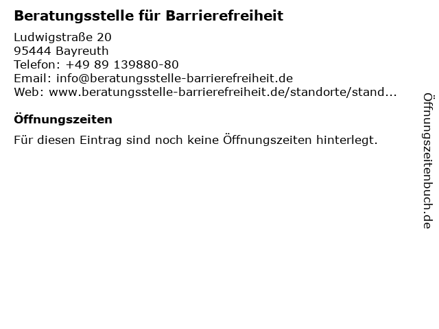 | 1 Lohnsteuerberatungsverbund e.V., Beratungsstelle Bayreuth (Entfernung: 0,08 km) Kanzleistr. 2, 95444 Bayreuth 2 Rummelsberger Dienste Beratungsstelle für Senioren und Angehörige Bayreuth (Entfernung: 0,65 km) Friedrichstraße 61, 95444 Bayreuth 3 AVALON Bayreuth Notruf- und Beratungsstelle gegen sexuelle Gewalt (Entfernung: 0,71 km) Casselmannstr 15, 95444 Bayreuth 4 Aids-Beratungsstelle Oberfranken (Entfernung: 0,85 km) Friedrich-von-Schiller-Straße 11 1/2, 95444 Bayreuth 5 Bayerischer Landesverein für Heimatpflege e. V. Beratungsstelle für Volksmusik (Entfernung: 1,51 km) Adolf-Wächter-Str. 37, 95447 Bayreuth 6 Lohnsteuerberatungsverbund e. V. -Lohnsteuerhilfeverein- Beratungsstelle Lautertal (Entfernung: 6,99 km) Am Katzenbach 3, 95500 Heinersreuth |